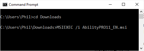 MSIEXEC /i AbilityPRO11_EN.msi