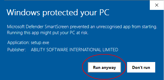 Microsoft Defender paranoid modeWhen installing Ability - especially when a new version has been released - you might see the following warning from Windows Defender: